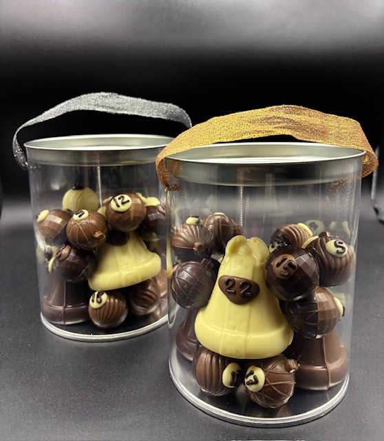 Ingrédients | Ingrédients; sucre, pâte de cacao, purée de fruit 100% ; (passion, framboises, yuzu, citron vert), NOISETTES, AMANDES, beurre de cacao, matière grasse LAITIERE, LAIT entier et partiel en poudre, sucre roux, sucre inverti, farine de SOJA, sirop de glucose, dextrose, farine de FROMENT, fèves de cacao écalées, graisse végétale de ;(colza, tournesol, cacao, coco, ilipe, karité), BEURRE fondu, CREME, tonka, miel, cannelle, gingembre, orange, citron, éclat de caramel, blanc d'œuf suisse d'élevage au sol, arôme et vanille naturelle en poudre, sel alimentaire, extrait de malte d’ORGE. Émulsifiant (E322 lécithine de SOJA, COLZA), Déco ; colorant et aromes alimentaire (concentré de radis, cassis et pomme) E100, E160. Couverture chocolat lait 35%. Couverture chocolat noir 47%. Couverture chocolat blanc 36%. A conserver à l’abri et au sec entre 14 et 20°C. |